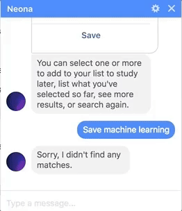 Neona: Sorry, I did not understand ‘Add machine learning to my list’. Type ‘help’ if you need assistance.