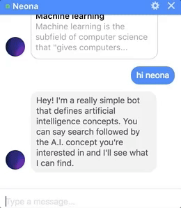 Neona has two purposes: teach users about artificial intelligence concepts, and serve as an interactive chatbot demo (e.g., for this talk of Paul's).